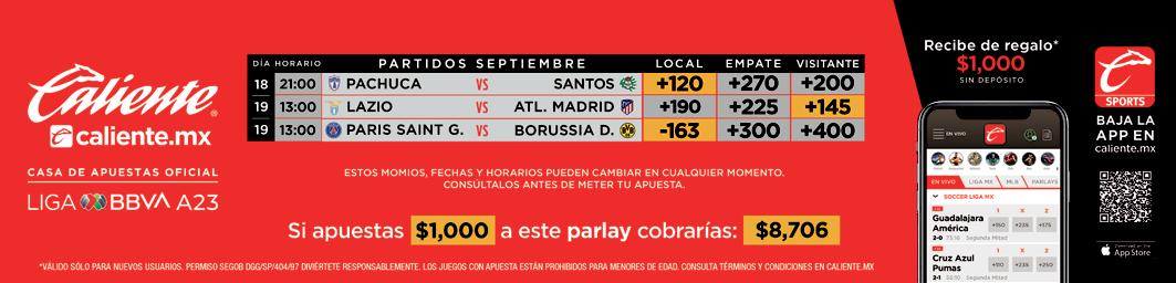APUESTA AL PARTIDO CLUB PACHUCA +125 EMPATE +275 SANTOS LAGUNA +200 APUESTA AL PARTIDO CORINTHIANS SP +145 EMPATE +220 GREMIO RS +195 LUNES 18 DE SEPTIEMBRE DE 2023 9