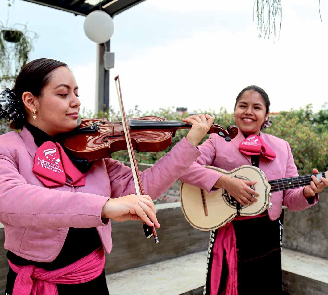 Vestidas con traje de mariachi rosa, montadas en una trajinera adornada de flores sobre uno de los canales del lago de Xochimilco, en la Ciudad de México, las mujeres de Mexicana Hermosa se hicieron virales en redes sociales al interpretar una versión de Dance The Night “a la mexicana”, pieza que adaptaron a petición de la productora Warner Bros. El siguiente paso, cuentan, es que la misma Dua Lipa en persona se anime a cantar con su acompañamiento. •