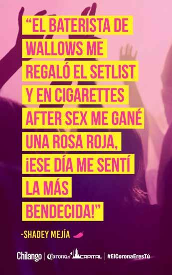 Este 2025, Chilango y Corona Capital lanzó una invitación muy especial para celebrar los 15 años de este festivalazo: #ElCoronaEresTú, una dinámica dedicada a todas esas historias que nacieron entre escenarios, luces y gritos de emoción. La misión era simple, pero poderosa: contar esa anécdota que te marcó en el festival. Desde el momento mágico que te cambió la vida, hasta el fail épico que aún te saca una risa. Porque si algo nos une, es que en el Corona Capital todos tenemos una historia que contar… y algunas de ellas se ganaron un pase directo para vivirlo gratis este 2025.