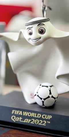 Una de las cosas favoritas para los aficionados, so bre todo en una Copa del Mundo, son las mascotas, son excelentes. Más allá de animar a los jugadores, sirven para que el país anfitrión represente sus tradiciones y cultura. Como dato histórico, la pri mera mascota que se presentó en un Mundial fue Willie, un simpático león vestido con la camiseta de la Union Jack que fue creado para la edición de 1966 de Inglaterra. Este amiguito fue diseñado por el artista Reg Hoye, quien ilustró algunos libros infantiles de Enid Blyton. Según se ha dicho, Willie “evocaba la nobleza y el linaje británico, así como la fuerza y la valentía de los futbolistas”. Para este Mundial nos acompaña La’eeb, un turbante de color blanco animado; su nombre en árabe signi fica “jugador habilidoso”. Cabe mencionar que esta prenda de ropa es típica de Oriente Medio.