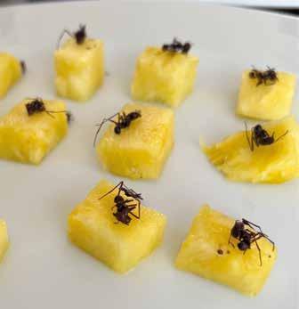 Me ofreció una: «cómete primero la cabeza». ¡Pum!: té de limón en su máxima potencia. En mi universo de sabores tengo presentes a varios insectos y las chicatanas, que también son hormigas y que he comido múl tiples veces en Oaxaca y Veracruz, tienen otras notas organolépticas: a veces me saben a canela, otras a lluvia, unas más a nuez... Todo lo que probamos es un reflejo del entorno biocultural.