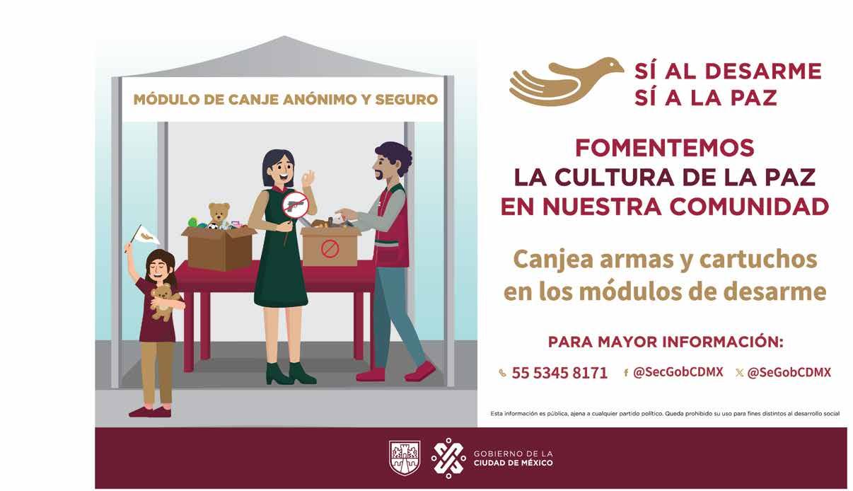 toridades de la CDMX. Durante la ceremonia, el jefe de Gobierno, Martí Batres, felicitó a lxs artistas Eduardo Díaz, Catalina García y Emilio Padilla por ganar la segunda edición del concurso, que convocó 115 proyectos, 66 bocetos y 49 maquetas. El mandatario capitalino explicó que la tasa de homicidios en la ciudad permite observar que los casos por cada 100 mil habitantes disminuyeron de 15.7 a nueve en el actual gobierno, según cifras del Secretariado Ejecutivo. Por su parte, el presidente del Consejo Ciudadano para la Seguridad y Justicia, Salvador Guerrero, dio a conocer que el programa ha permitido captar 8 mil armas en esta administración, entregadas por 6 mil 500 personas.