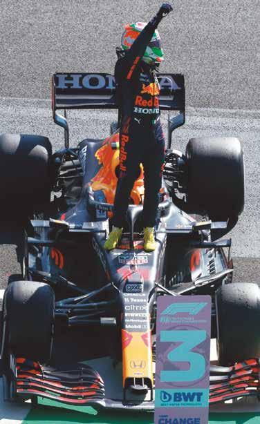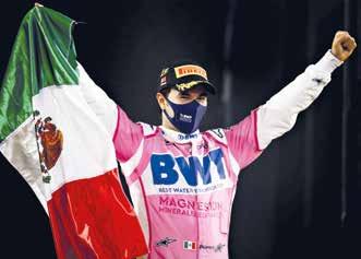 Posteriormente, con Racing Point logró podios en el año 2020: en el Gran Premio de Turquía quedó en se gundo, mientras que en el de Shakir tuvo su primera victoria tras apro vechar un doble error de Mercedes. Fue a partir de este momento cuando “Checo” comenzó a despegar nota blemente su carrera.