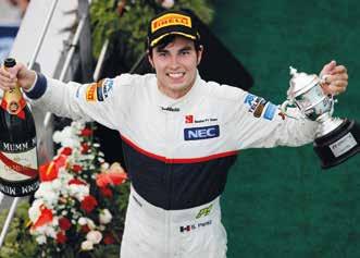 La entrada de Checo en la Fórmula 1 ocurrió en 2011 con la escudería suiza Sauber. Aunque debutó en el Gran Premio de Australia, fue descalificado por irregu laridades en sus alerones traseros. Ese año en general no fue perfecto para él. Sin embargo, en 2012 llegó a su primer podio con el segundo lugar en Malasia y fi nalizó su temporada en el top ten, lo que le valió su paso en 2013 a McLaren, donde solo duró un año.