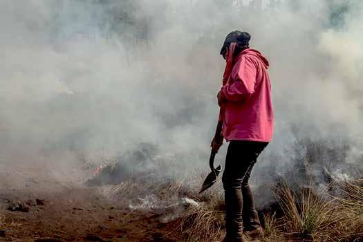 los bosques conscientes de que dan un servicio a toda una ciudad al mantener vivo uno de sus pulmones verdes. Entre las actividades más peligrosas que realizan está el combate a los incendios, pues implica jugarse la vida, además de que han incrementado y se han vuelto más voraces. Pero más importante (y barato) aún, es el trabajo preventivo para evitar la propagación del fuego, como expone Agustín Martínez, comunero y ex coordinador de brigadas en San Pablo Oztotepec: