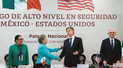 La secretaria de Relaciones Exteriores, Alicia Bárcena, refrendó ante altos funcionarios estadounidenses el “firme compromiso” del gobierno federal para combatir el tráfico de drogas sintéticas, “cuyo consumo ha causado tanto daño a la sociedad” de esa nación. Al iniciar el Diálogo de Alto Nivel sobre Seguridad entre México y Estados Unidos en Palacio Nacional, la canciller señaló que la instrucción del presidente Andrés Manuel López Obrador es brindar apoyo y colaboración para “vencer este flagelo con visión humanista”. En su intervención, la titular de la Secretaría de Seguridad y Protección Ciudadana, Rosa Icela Rodríguez, apuntó que Estados Unidos tiene un complicado problema de salud pública por consumo de fentanilo: “En algunas zonas, México enfrenta la violencia por la disputa entre grupos criminales y producto de la venta de drogas; se abastecen con dinero y armas del otro lado de la frontera”. La funcionaria federal aseguró que es un “círculo vicioso del que sólo podremos salir si ambas naciones trabajamos de la mano”.