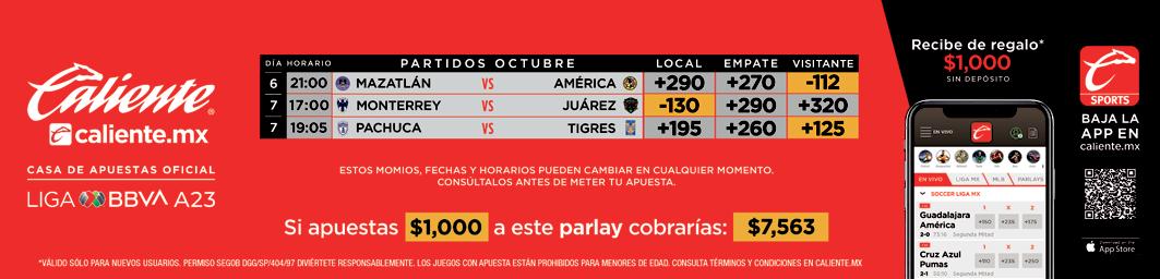 *Estos momios pueden cambiar en cualquier momento. Consúltalos antes de meter tu apuesta.
