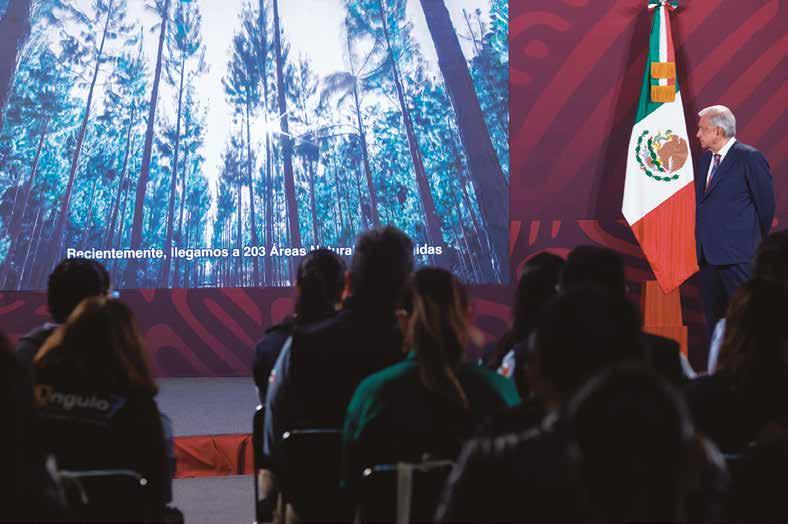 El gobierno del presidente Andrés Manuel López Obrador informó que busca ser la administración con más Áreas Naturales Protegidas (ANP) decretadas y para ello alista crear 22, las cuales estarán en diciembre próximo. “Estas suman más de 3 millones de hectáreas en 17 estados, con lo que al cierre de 2023 pasaremos de 203 a 225 ANP con una superficie de más de 95 millones de hectáreas”, señaló en conferencia de prensa el titular de la Comisión Nacional de Áreas Naturales Protegidas, Humberto Peña. Por su parte, la secretaria de Medio Ambiente y Recursos Naturales, María Luisa Albores, explicó que a la fecha han decretado 21 de las 43 que se tienen como meta para 2024; es decir, una vez que concluya el sexenio.