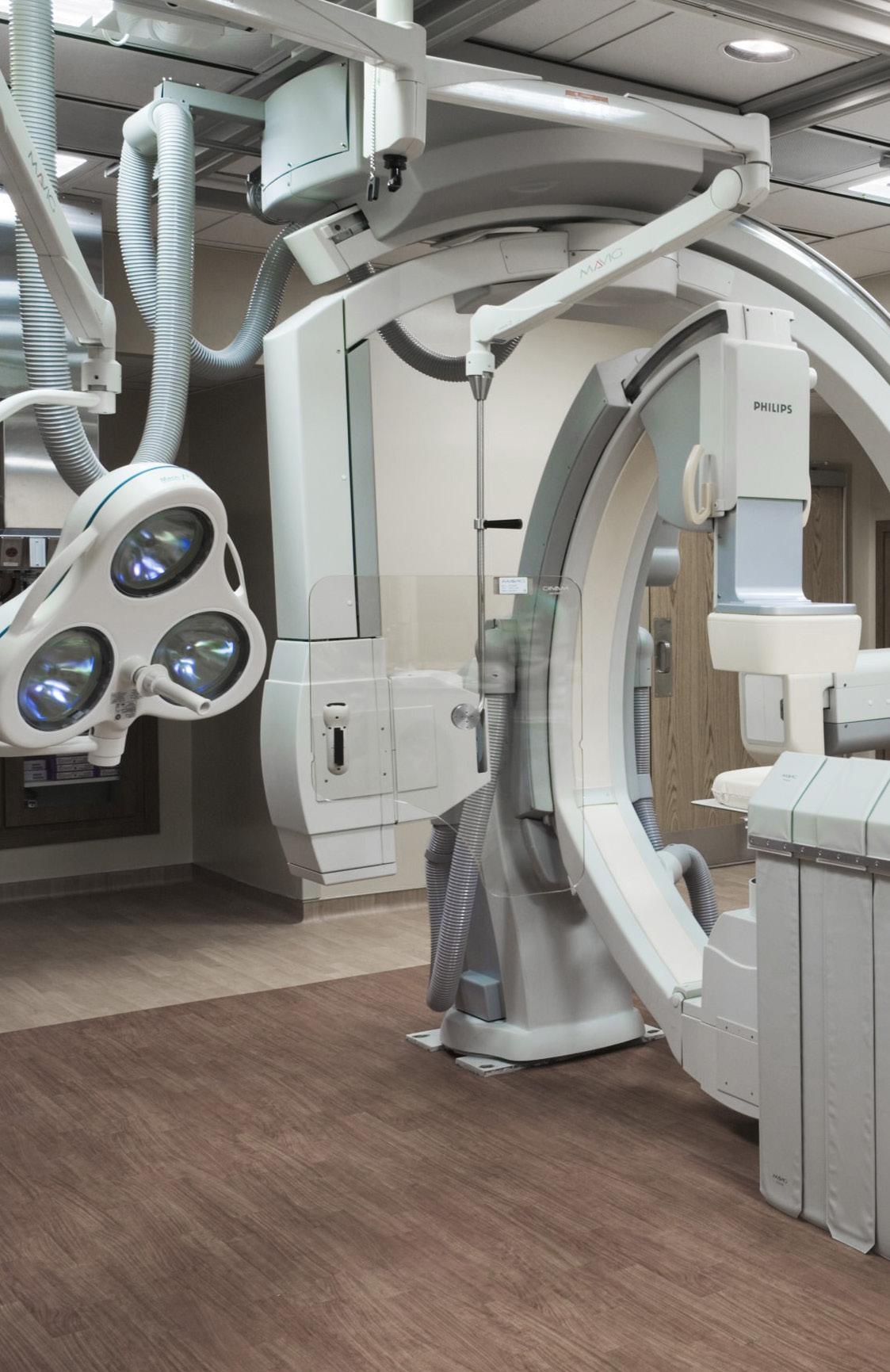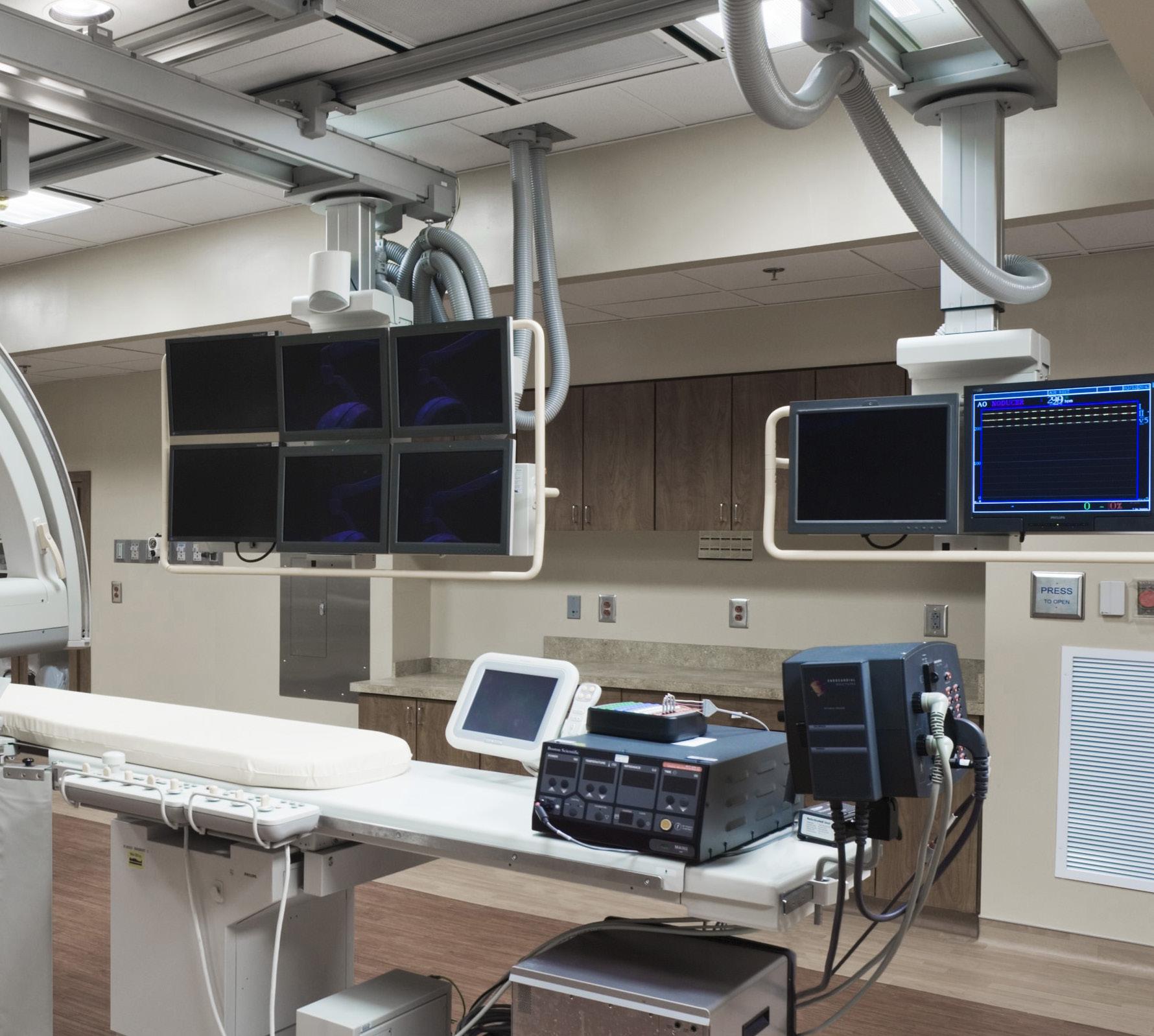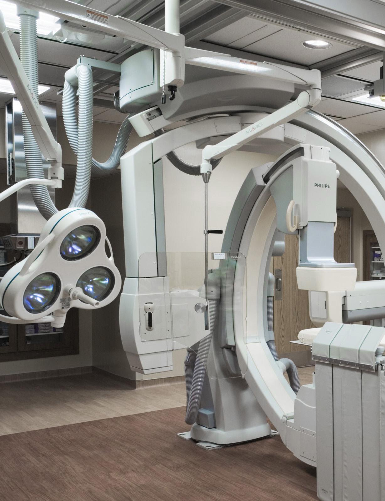 MMA is skilled at designing technologically complex environments in antiquated space. Accommodating new Phillips Allura bi-plane systems, with overhead rolling weights that of a small car , in low 12 foot floor to floor heights with insufficient structural capacity to carry the load is MMA’s specialty. The final design is not perceived as a renovation at all but instead appropriately as a flagship service line of the hospital. MMA, with its history of accomplishing technically challenging initiatives, had to assure the Owner in the first 2 weeks of the engagement that the new technologies would work in their 1966 era building. Going beyond just meeting the demanding parameters of this project, MMA also showed Hospital Leadership how non-invasive diagnostics could be connected the labs and to the Emergency Department below.