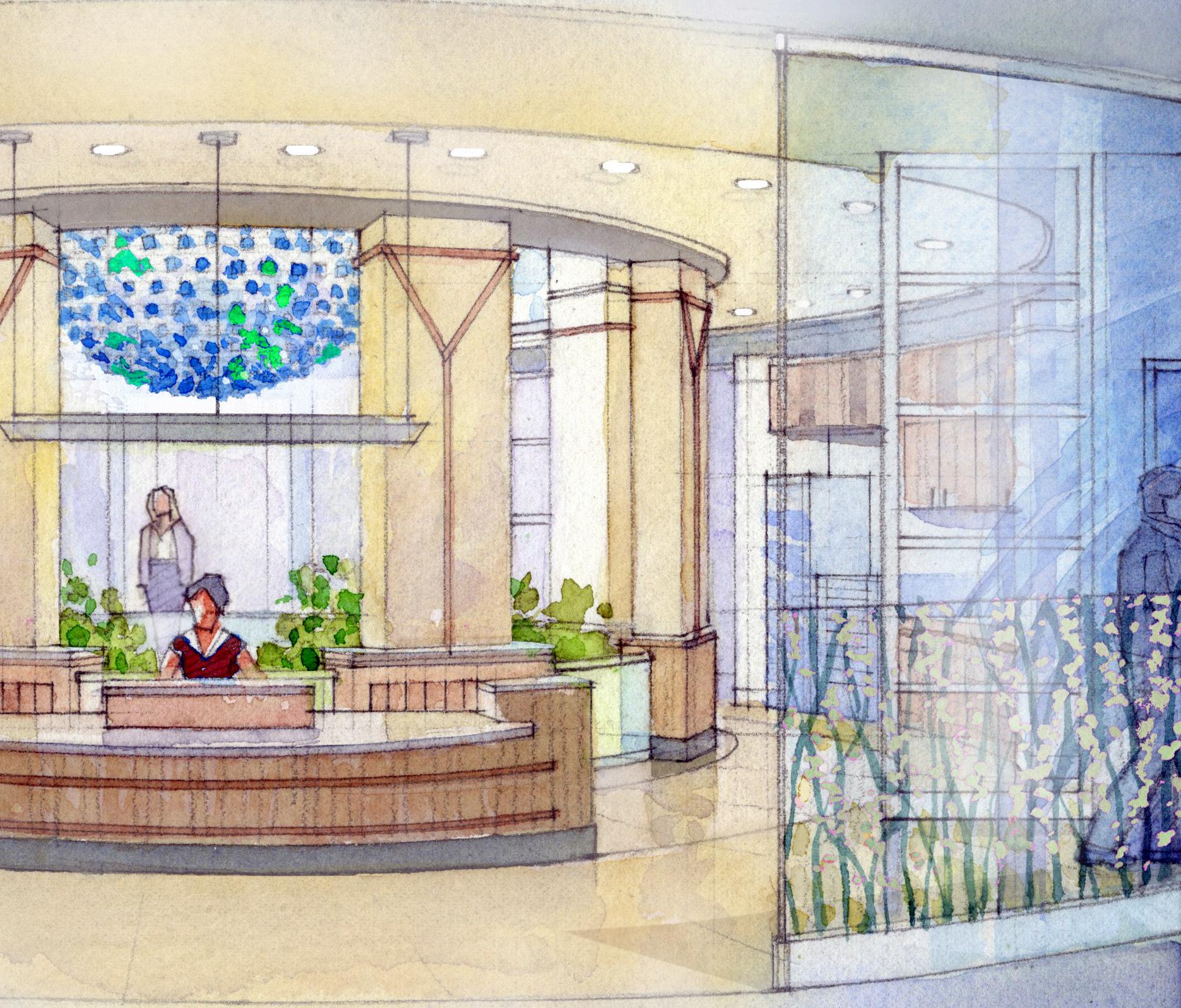 MMA reconfigured patient intake patterns as part of St. Mary’s largest capital expansion. Outpatient registration had been handled in the ED intake area and for a 40,000 visit ED this was not patient friendly. MMA’s solution consolidated inpatient registration and outpatient admissions, same day surgery and inpatient surgery case scheduling, and adjunct scheduling operations to make the patient/ organization interface as transparent , friendly and as organized as possible. The new service is located not more than 75 feet from the patient parking deck and just across the main lobby from vehicular drop-off. All coordinators, intake personnel and volunteers are in visual contact with one another and patients/ families are always connected with a person. The new atrium is a calming, organizational feature that is designed to initiate the wayfinding process in an understandable way. MMA is expert at distilling key functional flaws within a healthcare setting and proposing creative, cost saving solutions.