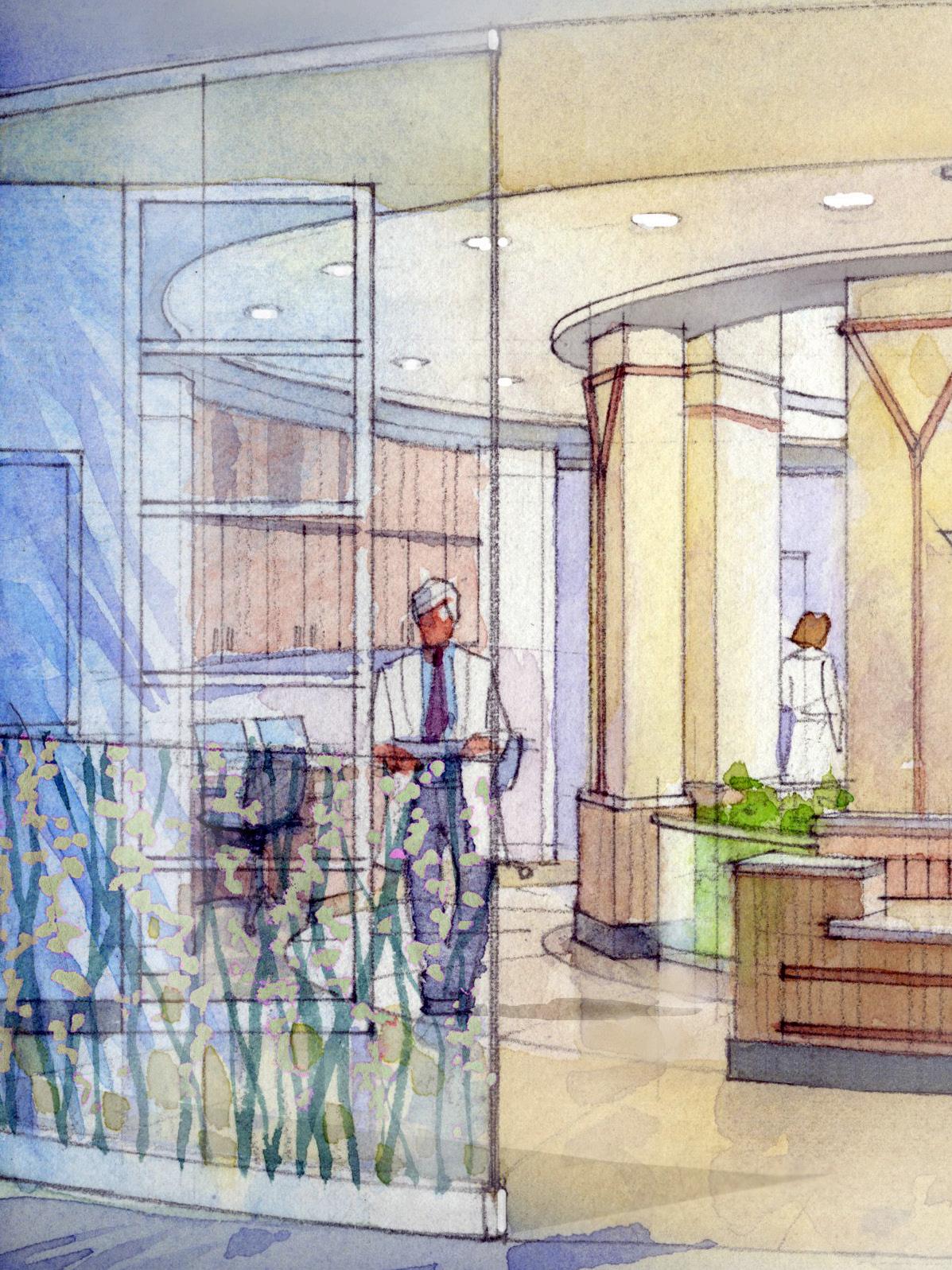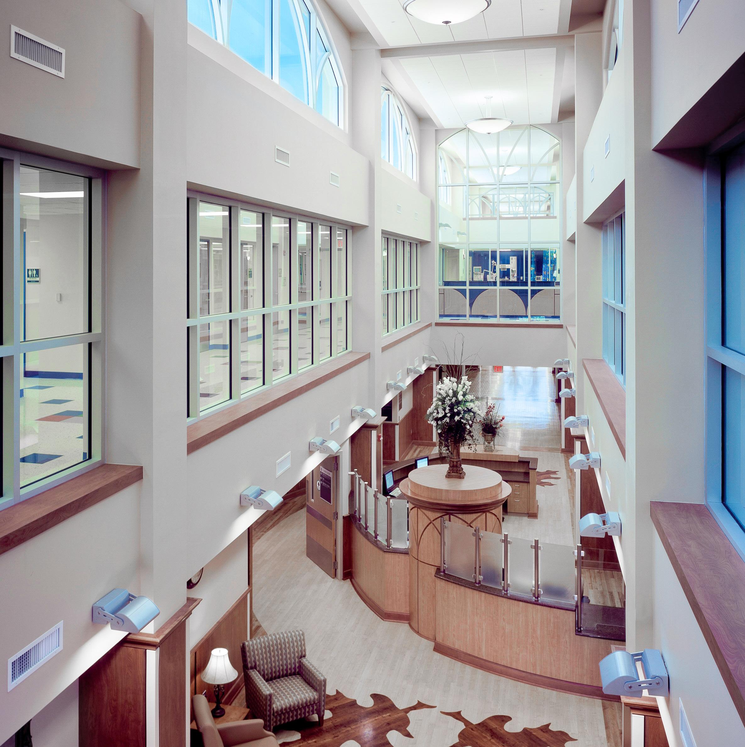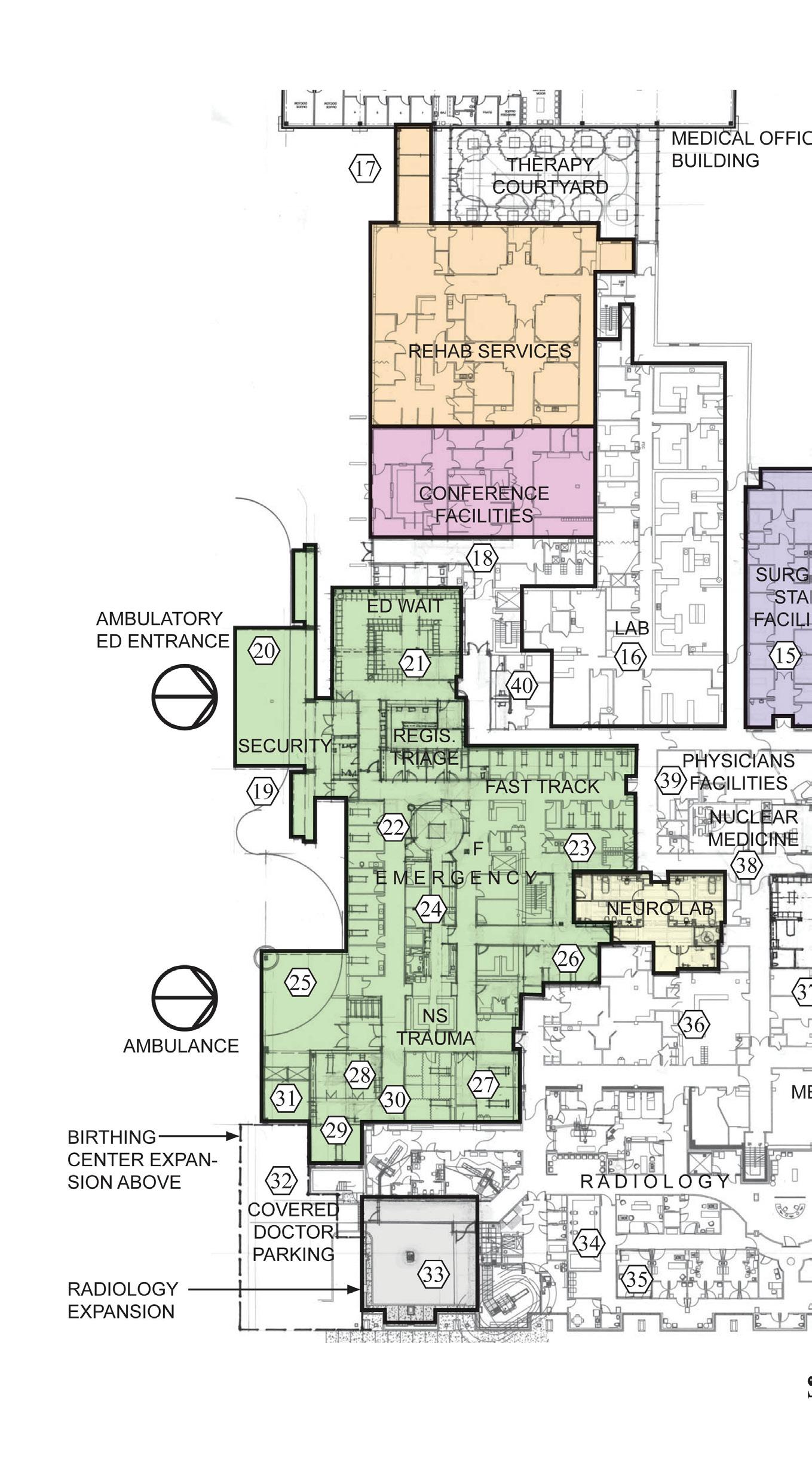 120,000 new square feet without the loss of a parking spot, reconfigures outpatient traffic patterns for customer oriented service, and provides the latest in healing healthcare environments.