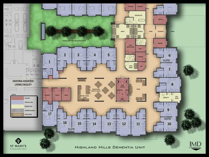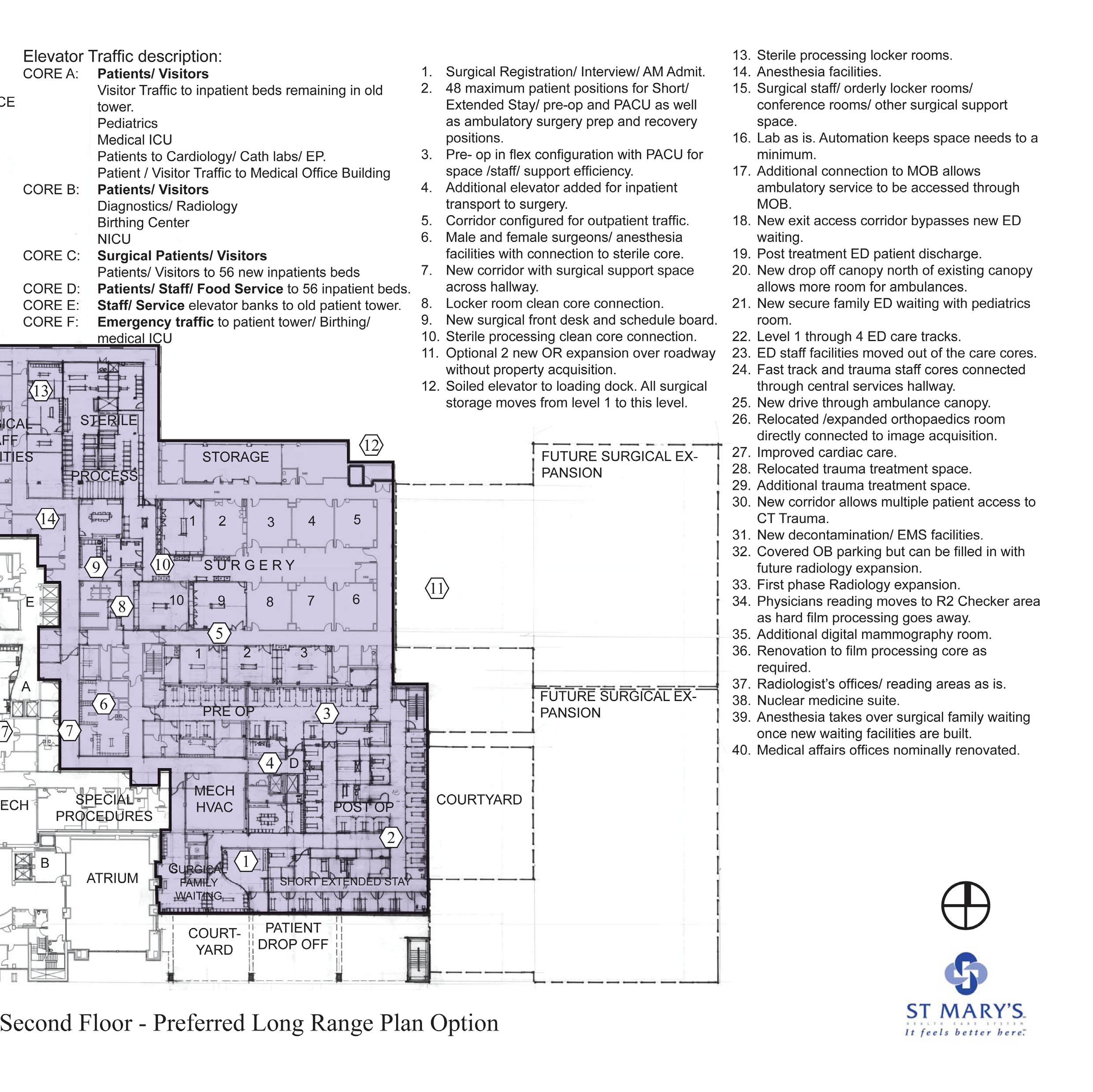 for over a year without a consensus being reached. The result was a bold imaginative design that completely revitalized the St. Mary’s image, bolstered morale and enabled a CEO decision to move forward. MMA’s master plan concept provides for