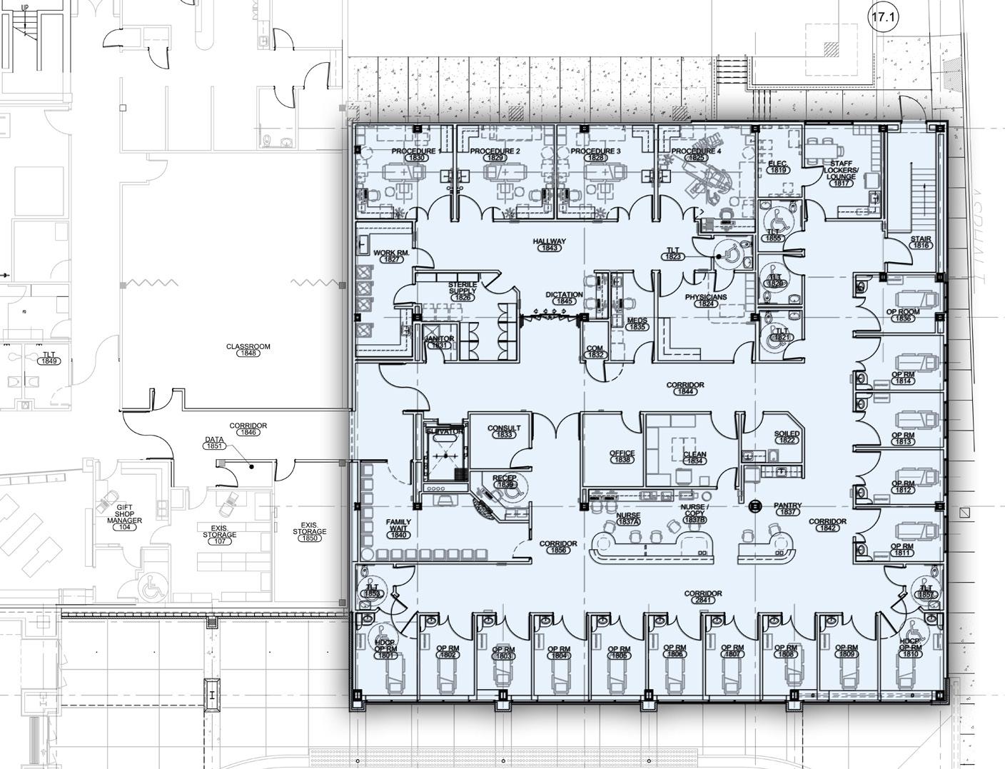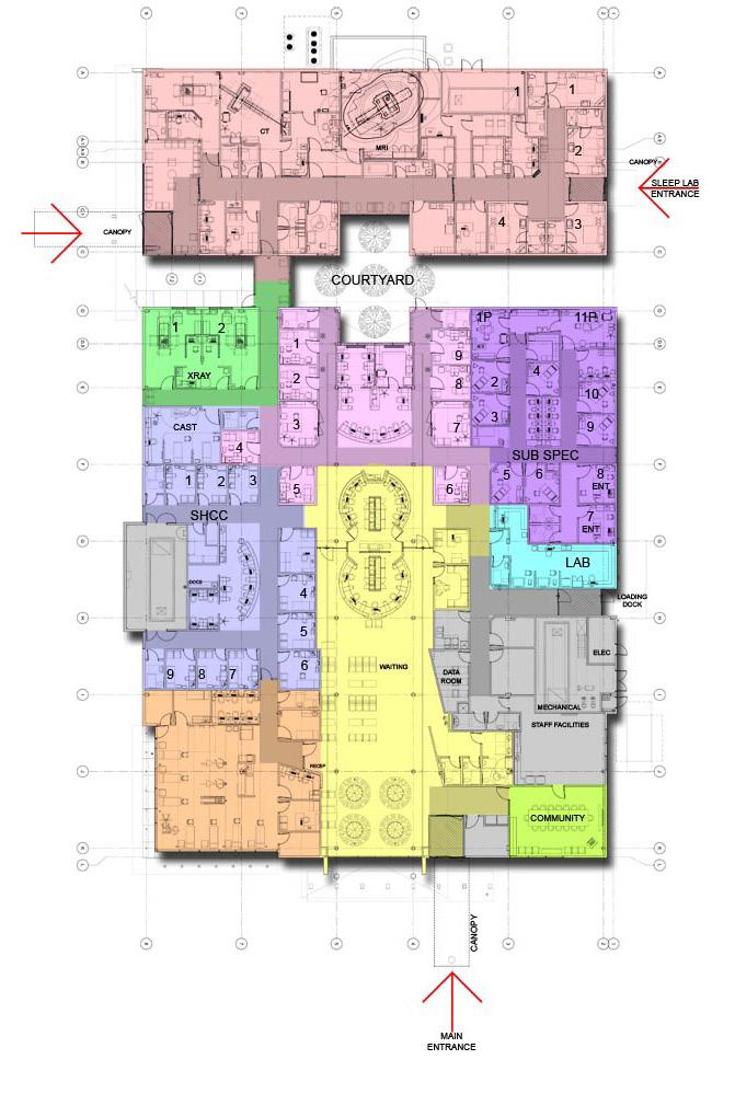 31,000 square foot, 8 component, process engineered ambulatory care facility designed for low cost, highest net to gross efficiencies, and optimal staff to physician/care giver ratios. MMA developed the detailed plans you see here and achieved complete buy in from all 8 user groups within 6 weeks from being authorized to commence work. Environments are evidence based driven, peer reviewed, and mock tested so upon opening day no process, whether it be IT or materiel related will be untested. Facility is expandable along major axis with clear intuitive wayfinding. MMA is a member of the collaborative healthcare research team at NXT and other research driven enterprises advancing thought on the patient experience. MMA’s straightforward design process involves all stakeholders in a collaborative, cross pollination environment where process improvements are the natural outcome. MMA client testimonials document a vast improvement in staff and workplace satisfaction in completed projects.