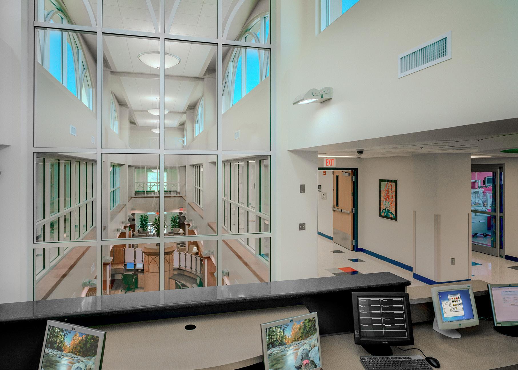 tional comfort and security. Transverse daylight axis design concept was accomplished in a building only 85 feet wide! Staff epicenter has visual connectivity with all ares of the unit including the staff lounge. Depending on the infants care plan, families have control over a private or a transparent environment. Overnight accommodations are provided for inside and outside the infants room.