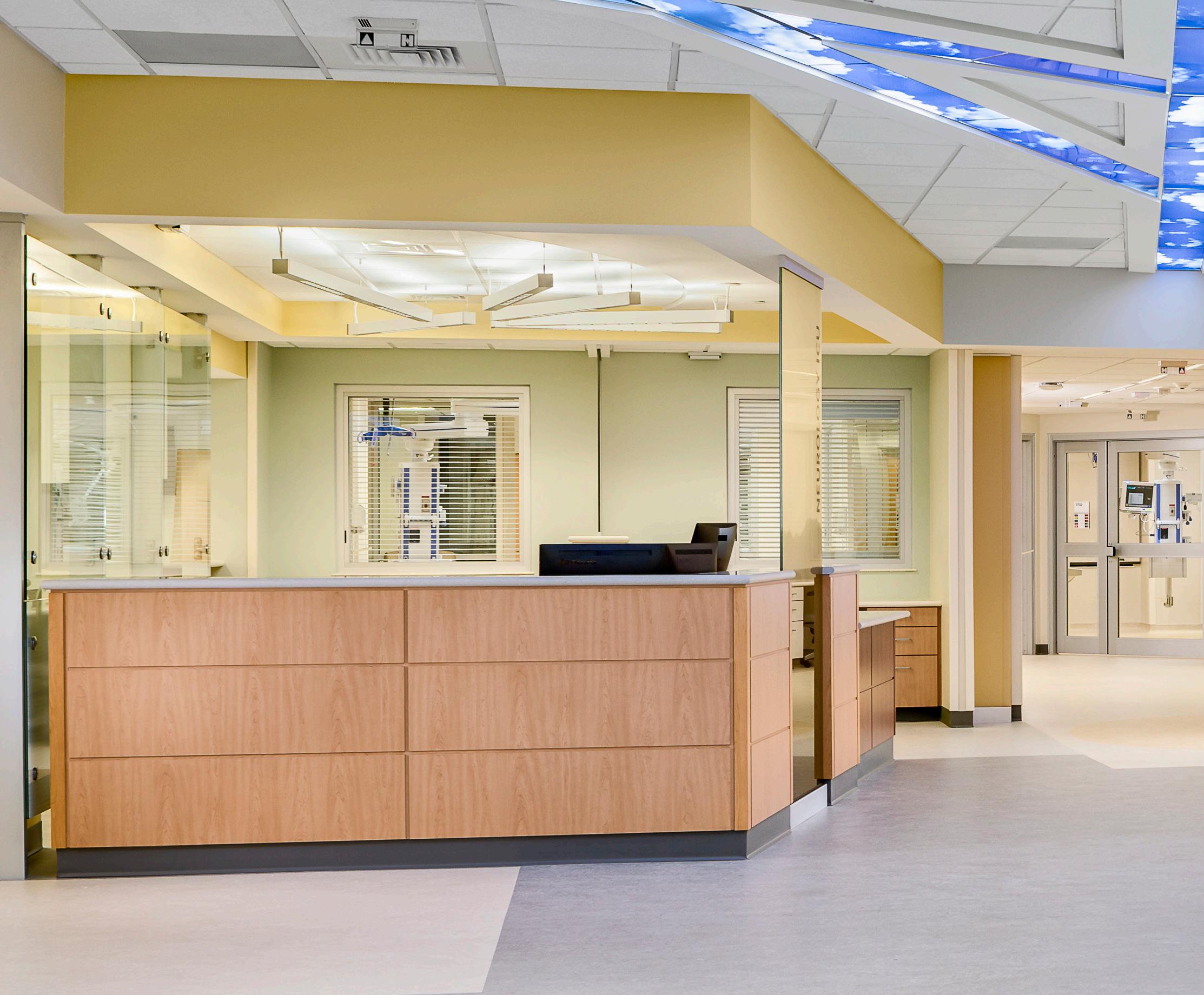 Wayfinding clarity, discreet mental health and health promotion settings and built in ability to expand are several hallmarks of the new design. New and improved fast track and emergent care functionality, security, quality control and error reduction objectives in key clinical settings were several core design prerequisites. Environments improve staff morale, utilization and efficiency, customer satisfaction and are great places to work. The Women’s Clinic Nurse Manager said it best: ‘The renovations are functionally perfect’.