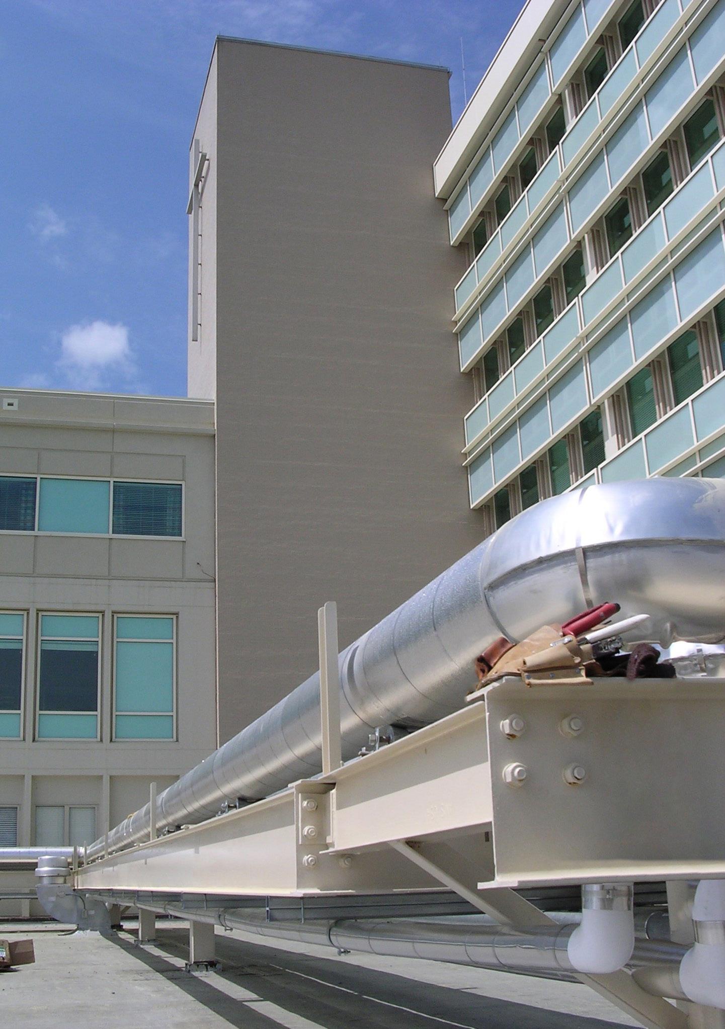 To support 120,000 square feet of long range growth at St. Mary’s and to bring power distribution to current code, MMA implemented a major new rooftop utilities backbone connecting the Central Energy Plant to the areas of new expansion. The extraordinary technical challenge involved independent structural analysis of 6 previously built additions to confirm the existing structure’s ability to support the 700 pounds per lineal foot of utility / rack weight and support design to accommodate new seismic criteria. Included is a new 4 branch power distribution penthouse with 45,000 pounds of electrical gear constructed over the existing surgical suite (equivalent to 3.5 MRI magnets)