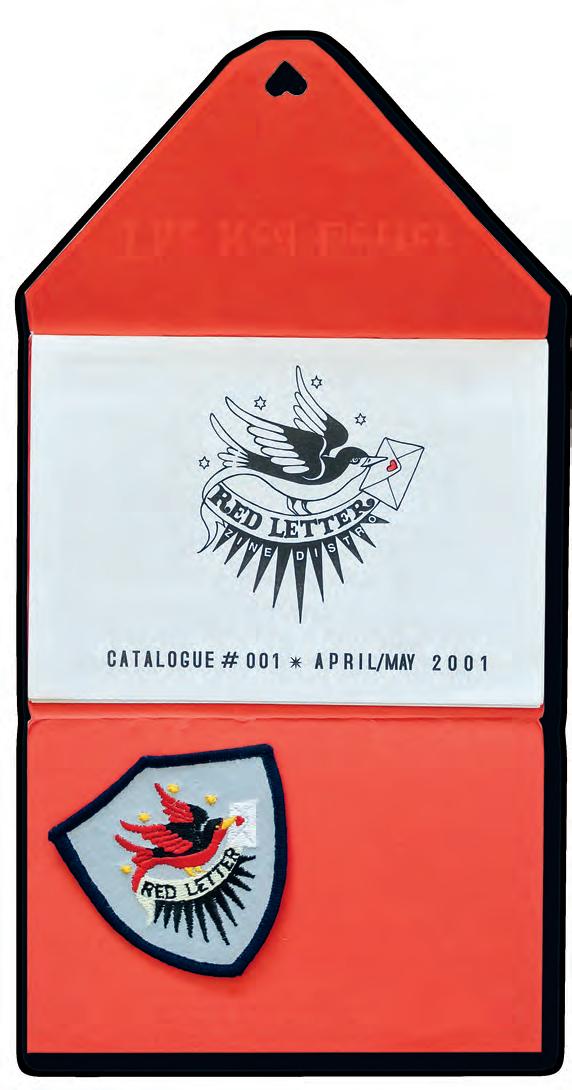 119. Red Letter Zine Distro catalogue and sew-on patch, Kerry Ann Lee, A6, 2001. Te Whanganui-a-Tara Wellington.