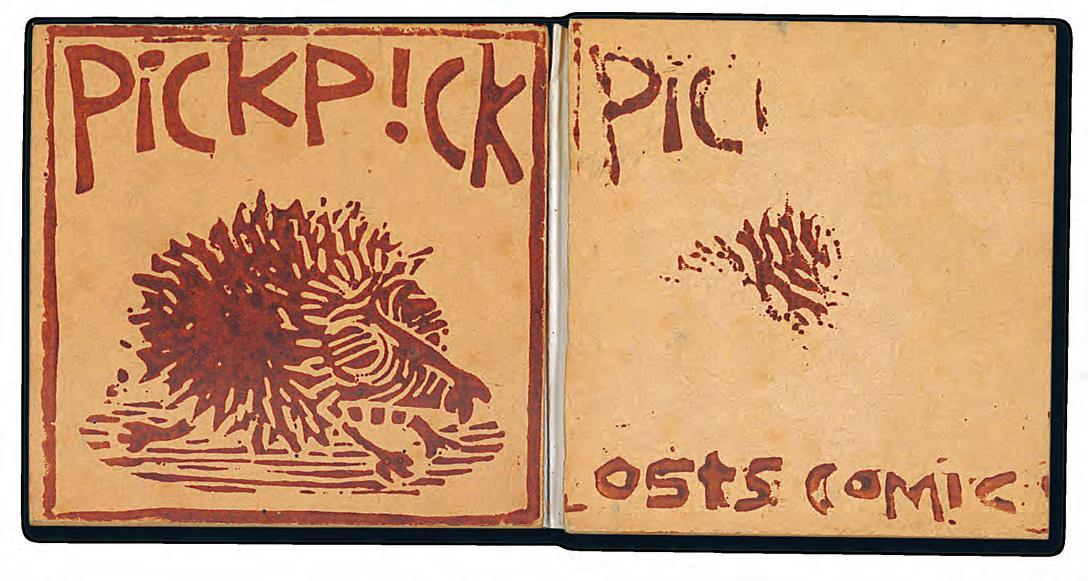 99. Pick Pick front and back covers, words by Indira Neville, pictures by Stefan Neville, Oats Comics, 105 x 105mm. Whāingaroa Raglan.