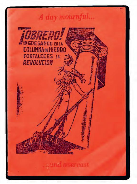 97. A day mournful and overcast, anonymous, reprinted by Ross Gardiner at Bruce Grenville’s Tāmaki Makaurau print studio for The Freedom Shop in Te Whanganui-a-Tara, A5, mid-1990s.