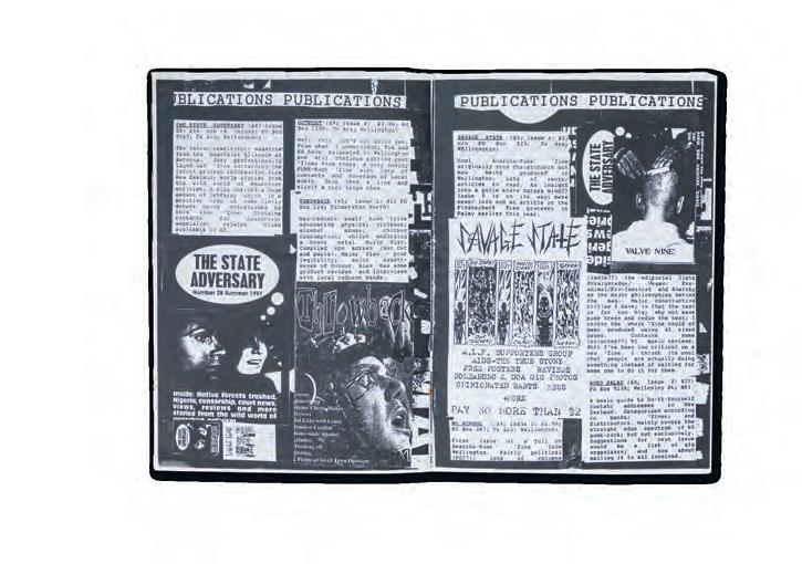 Beyond the music, eighties punk zines responded to incidents of police brutality, irrelevant royals, the bullishness of Prime Minister Robert Muldoon (who was ousted in the 1984 election), nuclear testing in the Pacific . . . all manner of contemporary issues. But such real-time reaction waned through the nineties, and by the two-thousands had all but disappeared as identity came to the fore. At the level of content, the politics of zines in the two-thousands might be feminist and personal, reacting to the age-old violence of patriarchy rather than zeroing in on a specific governmental issue. Riot Grrrl influenced zines in Aotearoa long after its mid-nineties heyday in the US. Other twothousands zines were completely apolitical in their content, but mounted a challenge at the level of aesthetics and mode-of-exchange.