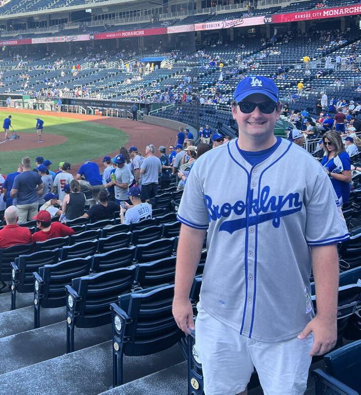 Ever the sports fan, assistant mass media professor Andrew Anglin takes in a baseball game.