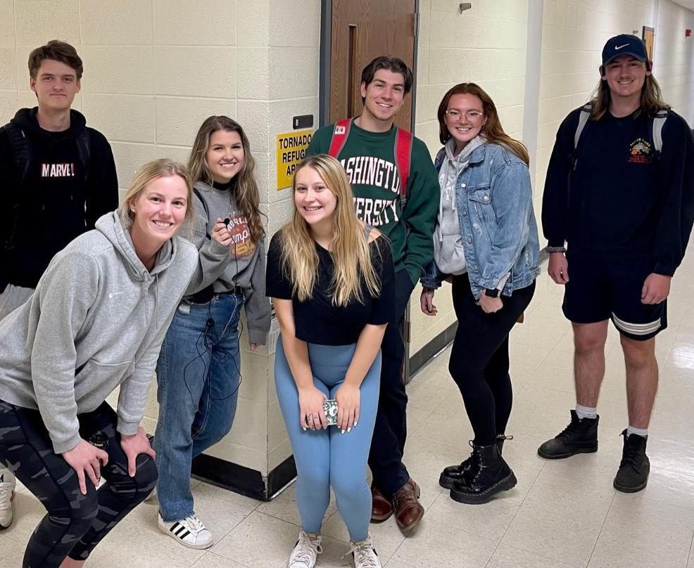 Hayden Kalp leads his team to create videos for Mass Media’s YouTube channel. (from left) Connor Dole, Halle Meister, Emily Burd, Katie Hampton, Dalton White, Ashley Williams and Kalp.
