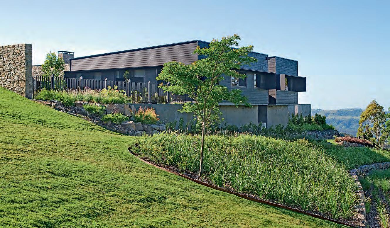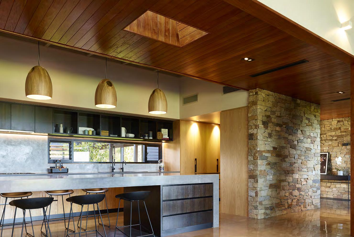 Inspired slate roof tiles are used in the external construction of the home, complemented by copper gutters, downpipes and ridge flashings to create synchronicity with the natural surrounds.
