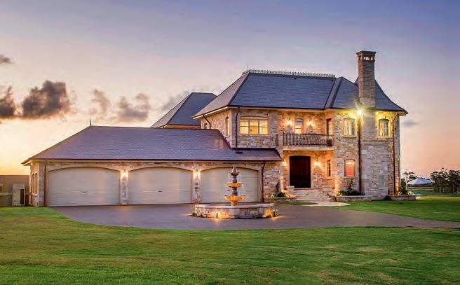 Effortlessly integrating with the gorgeous rural surrounds, the outdoor landscaped area features a heated, glass mosaic-tiled pool, a barbeque pavilion with smoker and fire pit, two hand-carved water fountains, a marble feature statue in the winter garden, elevated sandstone garden beds and sprawling green turf.