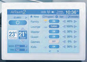 Available now at | Visit www.polyaire.com.au for more information ZoneSwitch • Manage air flow from the air conditioning unit to up to six different outlets. • Suited for all ducted reverse cycle and ducted heating systems. • Two Touchpads option, direct to Mainboard, no further setup required. • Switchable and selectable spill zone. • Personalised zone labelling. • All zones automatically resume their original on/off state once powered up after a power outage. ZoneTouch • Control your system with up to 2 x 5” LCD touchpads. • You can control the air flow in each room in 10% increments. • The system can control up to 16 zones. • Personalize your system labels. • In built with Turbo zone function for when you have a large group of people over. • 5-1-1 on/off timer Program. AirTouch 2 • Full control of your system whenever, wherever using WiFi or 3G/4G* with any mobile device. • Air flow in each room can be adjusted in 10% increments. • Provides full AC and on/off control for most major brands. • Control two units and up to 16 zones from a central point in your home. • New phone app for smartphones and tablet users with full AC control functionality. • Programmable to suit your lifestyle. • Adaptive interface for different installation scenarios. • In built with Turbo zone function; perfect for when you have large gatherings. * WiFi and internet access will depend on router by The ideal solution to managing temperature in each room - More zones means more control over your energy bill The average house has a minimum of one light switch per room - So why have less Air Conditioning Zones?