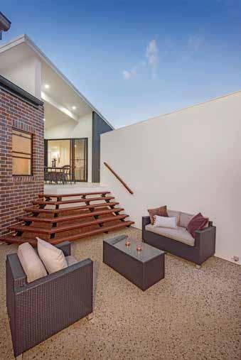 ‘‘ THE STEEP SLOPING AND NORTH FACING BLOCK WAS A REAL CHALLENGE NOT ONLY TO HAVE A MANAGEABLE, LOW MAINTENANCE HOME AND GROUNDS, BUT TO ACHIEVE MAXIMUM LIGHT AND VENTILATION.” OWNER OF DOWNS DESIGNER HOMES JEFF BUBECK