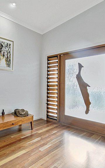 It has stone feature walls, LED mood lighting, a feature front door with a Fraser Island cutout, and the list just goes on.