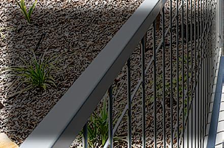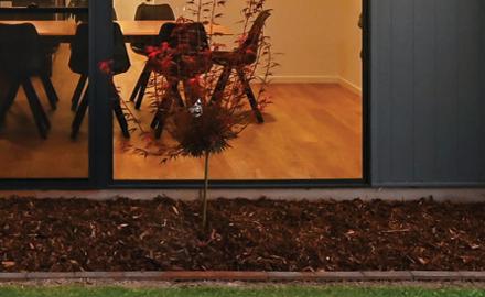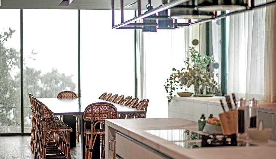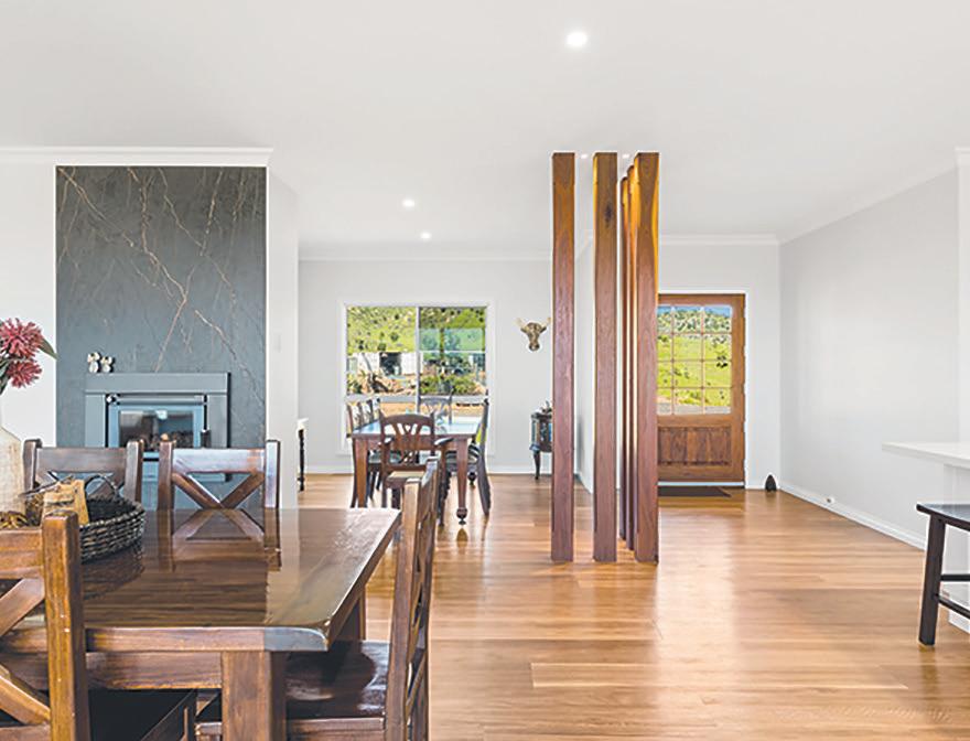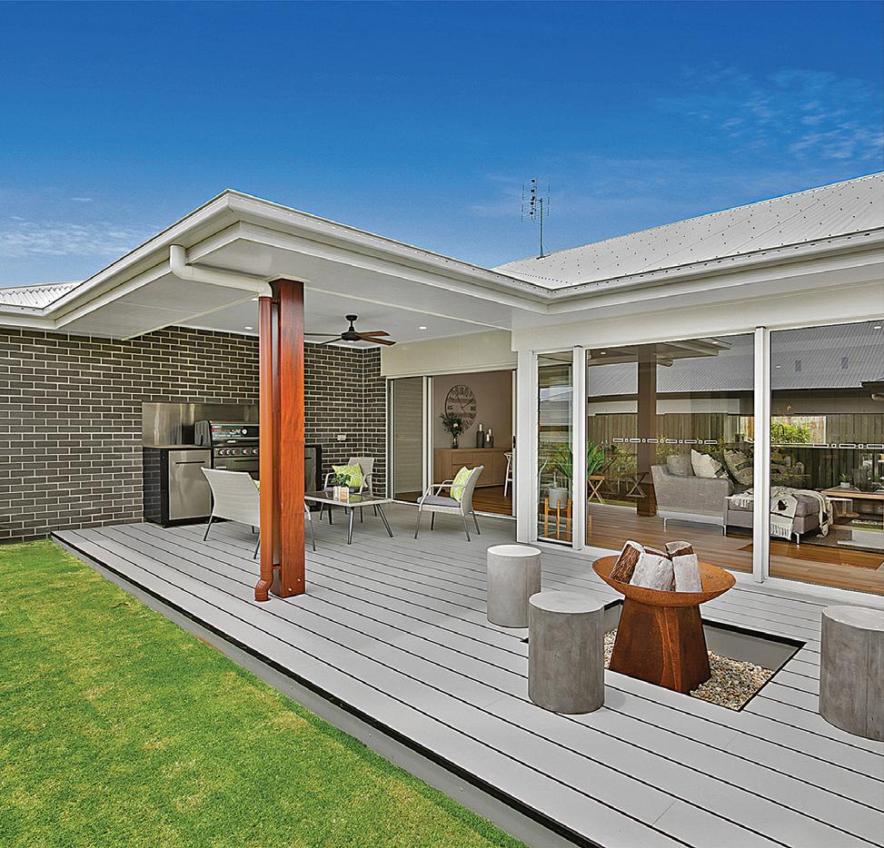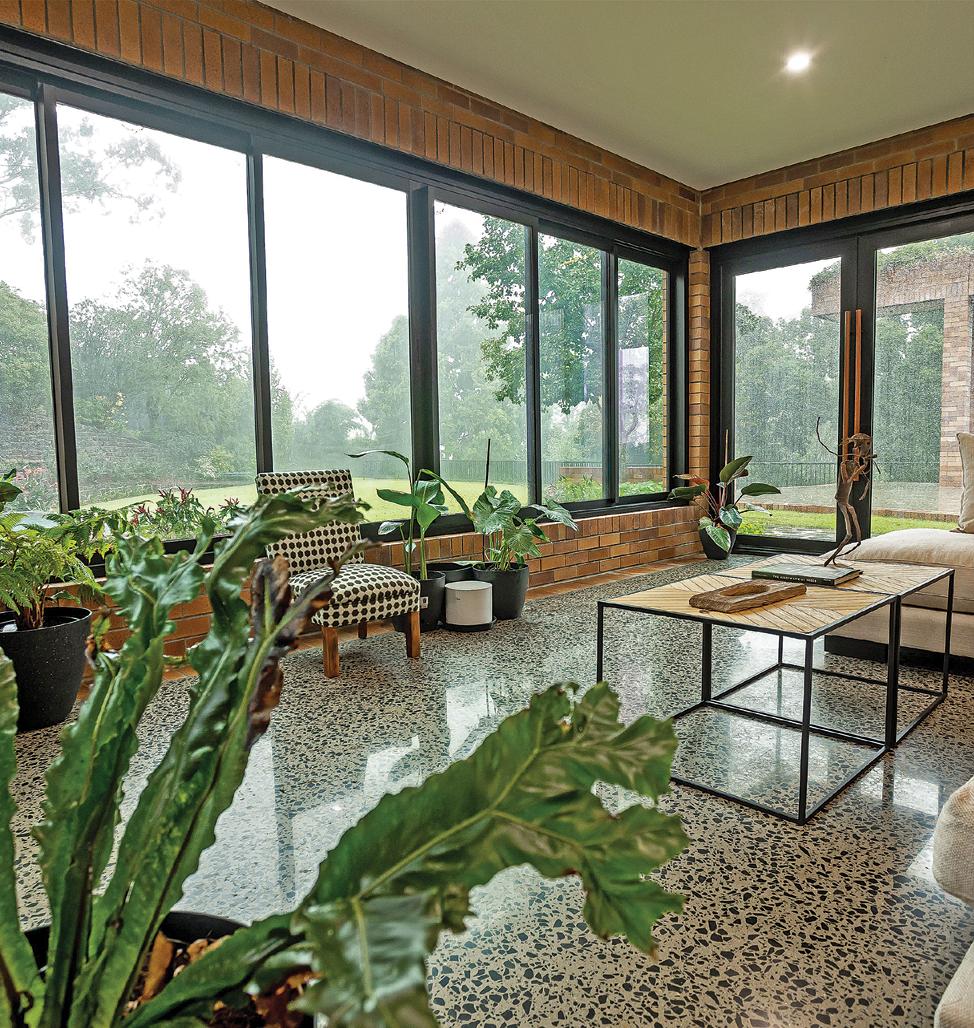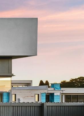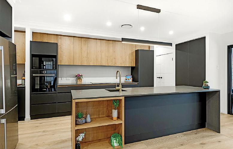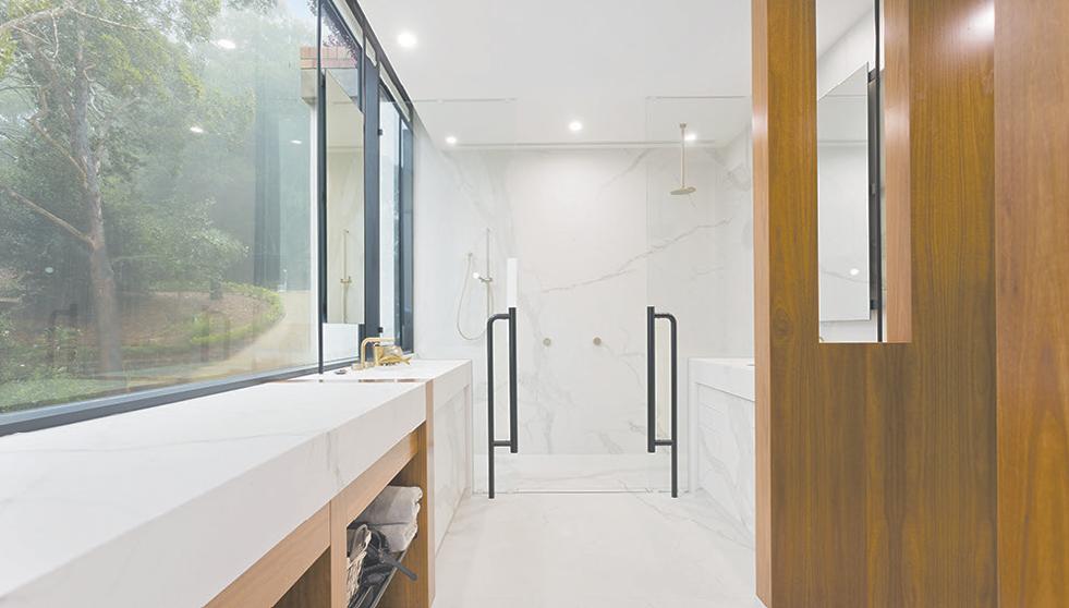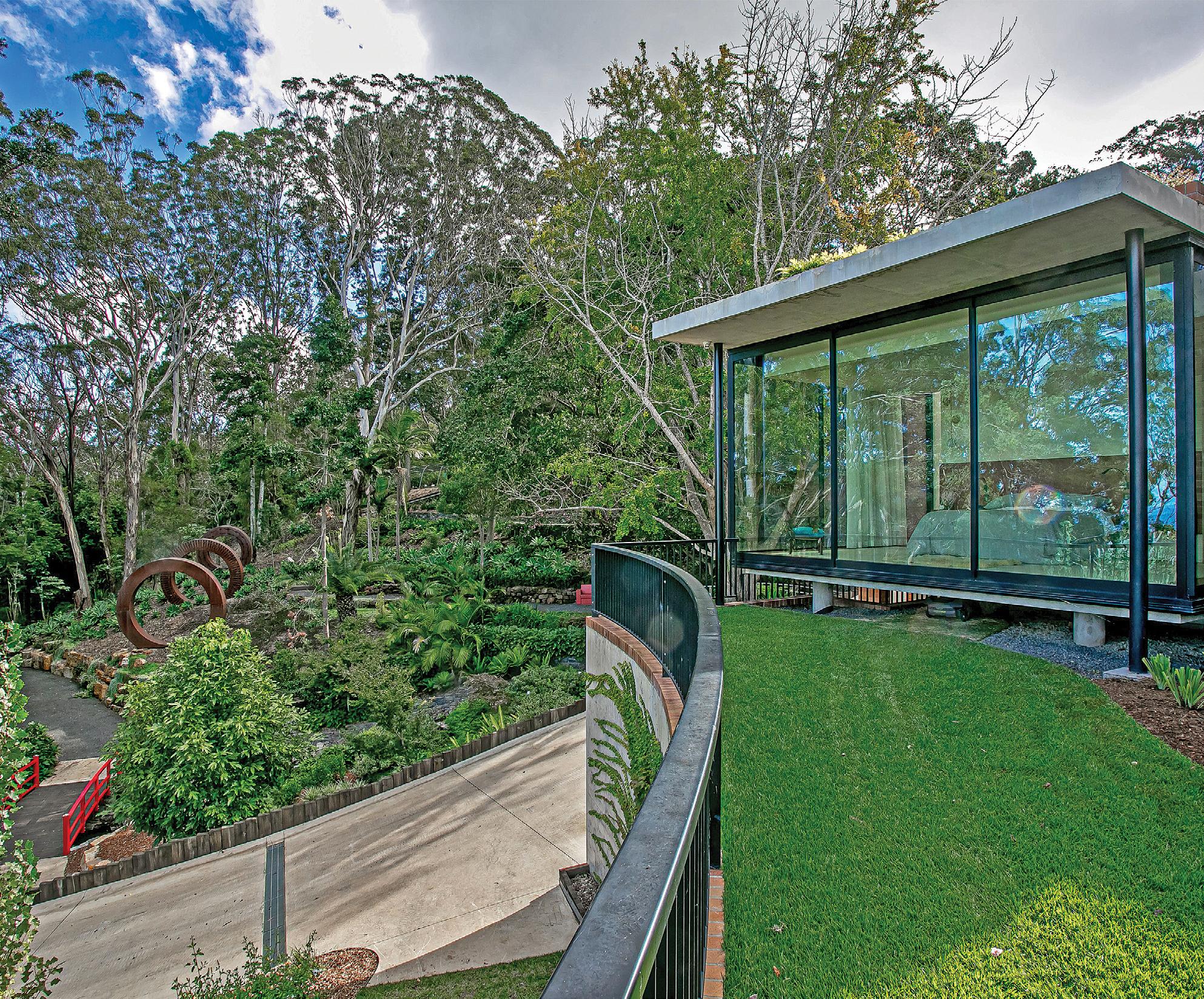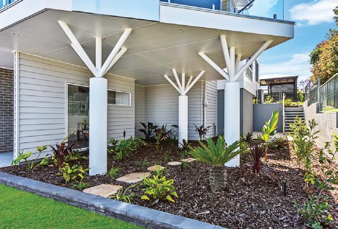 home, as well as the views from the property, so methods were used to ensure the lay of the land didn’t affect the overall floor plan – such as trucking in quality soil and sandstone blocks to counteract the slope while keeping the views from the 10-metre deck.