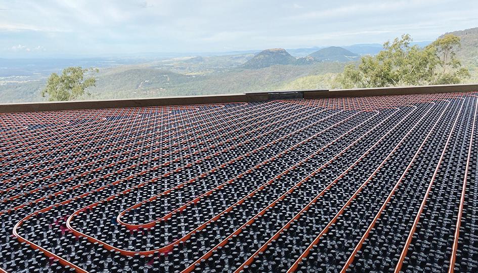 hydronic underfloor heating in a screed. Preformed panel with an R1.0 value was installed to provide an insulation barrier, ensuring energy efficiency is maximised.