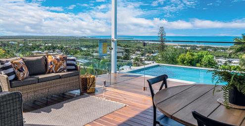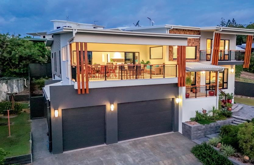 Across the Bay is one of those homes that evokes a holiday feel. Nestled neatly into a steep slope, this three-storey home soaks up endless views across Seventeen Seventy. The high atrium entrance and open environment has an undeniable feel of an island resort. Hand-sourced feature hardwood slabs accent the pure white interior, while the living opens to a spacious alfresco. The quality of design and workmanship, and use of the sloping block, has resulted in an enviable family abode.
