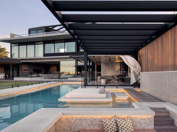 Inspired by its owners’ beloved vintage Impala, the cleverly designed home boasts five bedrooms, eight bathrooms/ powder rooms, a ‘man cave’ and golf simulator, while the pool and kitchen won their specialty categories at the Gold Coast Awards earlier this year.