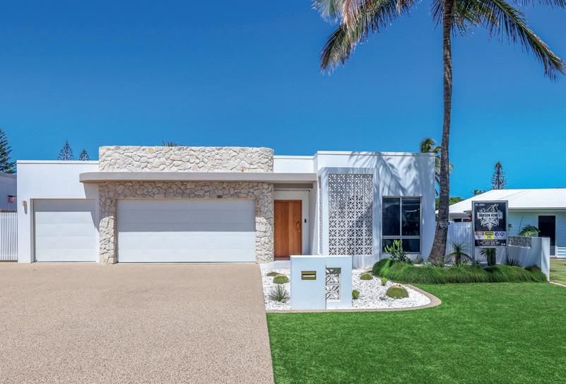 From the moment you approach Bargara Palms, its distinctive features make an immediate impact. The design integrates gracefully curved walls inside and out, alongside striking archways and a fusion of timber and stone. The home is situated on a north-facing block, perfectly positioned to take full advantage