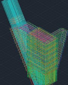 Computer modelling to identify material clashes, buildability issues, and optimal steel fixing sequencing.