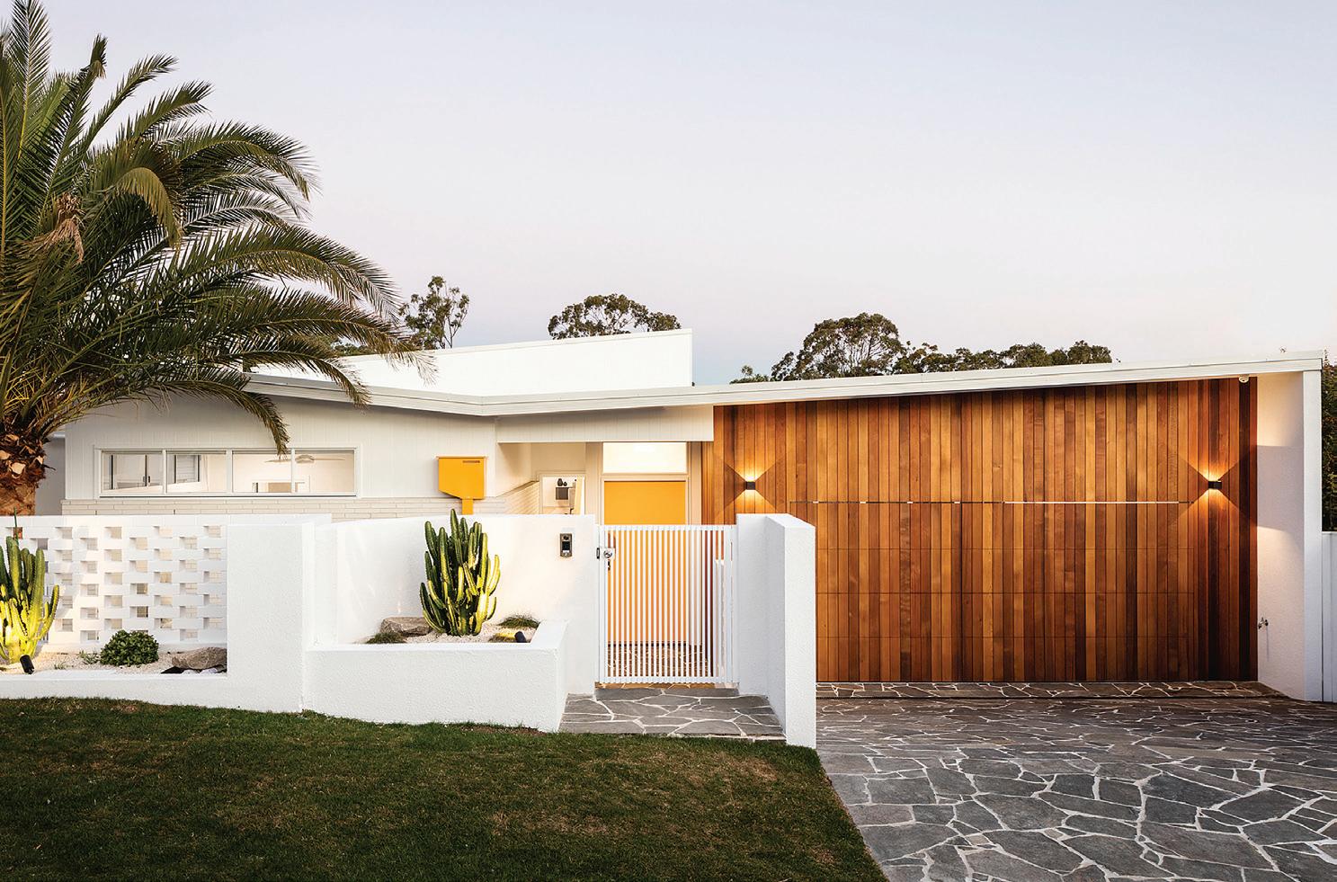 Outstanding materials and textures finish the house off and make it special, namely the cedar cladding which also features as a hidden detail garage door, elongated white brickwork and the crazy paved driveway, providing the beautiful finishing touches to