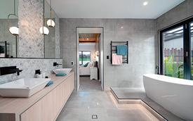 laundry, double garage and study nook, as well as the main bathroom with wet room style layout including free-standing bath and walk-in shower.