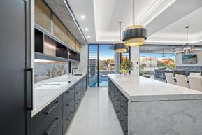 Grant Galvin Master Builders CEO Published by NEWSCORP on behalf of Master Builders Queensland Editor: Alyssa Welkewith its butler’s pantry offers a sumptuous pairing of contrasting colours to its cabinetry that run seamlessly into the ceiling. The inclusion of top-of-the-range appliances such as integrated fridges and freezers (to both kitchen and butler’s pantry), wine fridges, coffee machine, warming drawer, steam oven, pyrolytic oven, dishwashers and induction cooktop add a touch of luxury. Continuity to the spaces is in abundance with a large, fixed glass window to the BBQ area opening onto the servery.