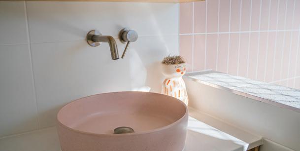 The tiling inside Art Work Spaces exudes character. Granite-look tile and plantar boxes in the entry colonnade, exterior mosaic tiling and gloss black bathrooms create a stunning aesthetic.