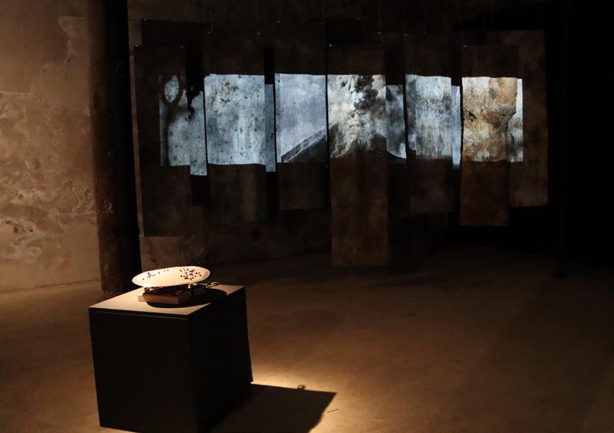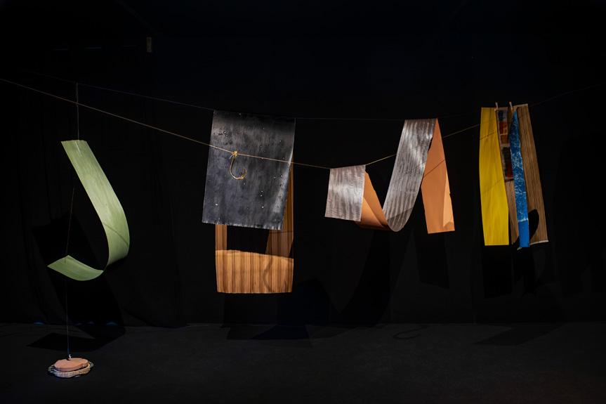 El tiempo como las piedras. Instalación sonora, expuesta en Nadie Nunca Nada No, en Madrid, como parte de la exposición Intersticios diáspora con la curaduría de La Parecía y Espacio Afro, 2023. Fotografía de Fabio Manosalva.