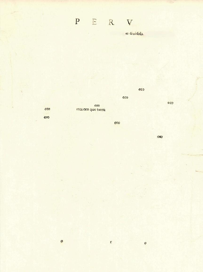 Cartografías de la violencia. Imagen del calco sobre el texto que acompaña al mapa del Perú en el Atlas Theatrum OrbisTerrarum. Mayra Villavicencio Príncipe, 2024.