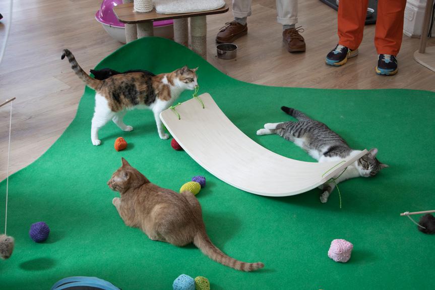 Prototipos núm.1,2 y 3 con interacción. Gatos Montessori. Prototipos con interacción performativa en colaboración con La Gatoteca (Madrid). Fotografía de Daniel Cao, 2024.