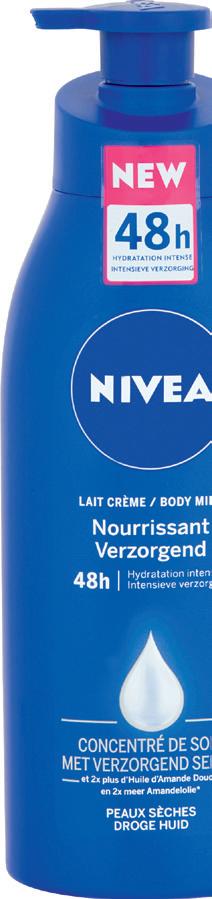 11,97 € NANA Hetgamma/ La gamme Voorbeeld/ Exemple : Mandverbanden Serviettes hygiéniques Pure sensitive Ultra normal 2 x 14 stuks/ pièces Normaleprijs 2x14stuks:5,78€ Prix normal 2 x 14 pièces : 5,78 € NIVEA Hetgamma/La gamme Voorbeeld/Exemple : Reinigingsmelk Normalehuid Lait démaquillant Peaux normales 3 x 200 ml 12,97 €/L Normaleprijs/ Prix normal 3 x 200 ml : 12,87 € NIVEA Hetgamma/La gamme Voorbeeld/Exemple : Hydraterendesprayaftersun Spray hydratant après-soleil 3 x 200 ml 24,97 €/L Normaleprijs/ Prix normal 3 x 200 ml : 32,55 € 14 98 = 5 € per bus bij aankoop van 3 = 5 € le flacon à l'achat de 3 = 1,43 € per pak bij aankoop van 2 = 1,43 € le paquet à l'achat de 2 = 1,66 € per pak bij aankoop van 3 = 1,66 € le paquet à l'achat de 3 7 78 = 2,60 € per bus bij aankoop van 3 = 2,60 € le flacon à l'achat de 3