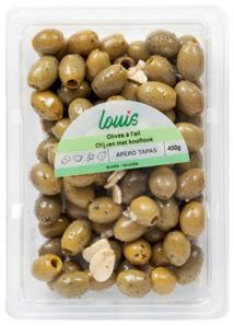 Voorbeeld/ Exemple : Olivijvenenkaasofolijvenmetlook Olives et fromage ou olives à l'ail Kuipje/ Barquette 400 g 10,30 €/kg
