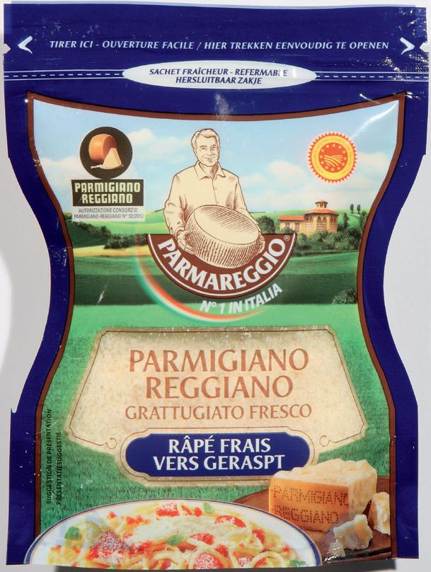 Parmigiano Reggiano PARMAREGGIO Hetgamma/ La gamme Voorbeeld/ Exemple : Geraspteparmezaan Parmesan râpé 2 x 60 g