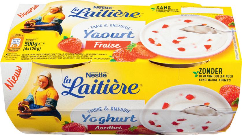 *YoghurtFris&Smeuïg Yaourt Frais & Onctueux LA LAITIERE NESTLE Voorbeeld/ Exemple : Abrikoosofaardbei Abricot ou fraise 2 x (4 x 125 g)