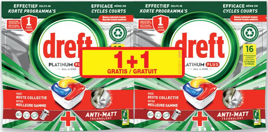 7 *Verrekeningaandekassa/ *Déduction faite en caisse 3 99 4 99 1199 12 49 9 99 2 DE ÈME DE LE GRATIS Slipsvoordamen Slips pour femmes Pockets Coton DIM M/ T 36-38, 40-42 of/ ou 44-46 Meerderekleurennaarkeuze Plusieurs coloris au choix 2 x 3 stuks/ pièces Normaleprijs/ Prix normal 2 x 3 stuks/ pièces : 27,98 € Vaatwastabletten Capsules lave-vaisselle DREFT Platinum Plus Lemon of/ou Clean Pack 2 x 16 stuks/ pièces 0,32 €/stuk/ pièce Normaleprijs/ Prix normal 2 x 16 stuks/ pièces : 20,38 € Waspods Pods de lessive DASH en / et ARIEL en / et vloeibaar wasmiddel/ lessive liquide DASH Hetgammain La gamme en pack Voorbeeld/ Exemple : Waspods/ Pods de lessive DASH en/ et ARIEL Ginger-Lila, +Unstoppables Color of/ ou +Active Pack 2 x 17-20 dosissen/ doses 0,36-0,30 €/dosis/ dose Normaleprijs/ Prix normal 2 x 17-20 dosissen/