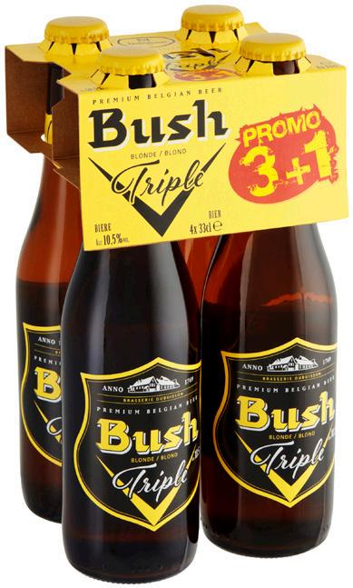 70 % ou noir éclats de cacao 70% 2 x 80 g 24 €/kg Normaleprijs/ Prix normal 2 x 80 g : 5,12 € Quiche L’ARTISAN GOURMET Allevariëteitennaarkeuze Toutes variétés au choix 2 x 300-375 g 19,98-15,99 €/kg Normaleprijs/ Prix normal 2 x 300-375 g vanaf/ à partir de 15.98 € Blondbier/ Bière blonde BUSH Tripel/ Triple + leeggoed/ vidange Pack 4 x 33 cl 3,78 €/L Normaleprijs/ Prix normal 4 x 33 cl : 7.59 € = 1,92 € per pak bij aankoop van 2 = 1,92 € le paquet à l'achat de 2 2 ème à 1/2 PRIX* de aan ème à 1/2 PRIJS PRIX* = 1,25 € per fles bij aankoop van 4 = 1,25 € la bouteille à l'achat de 4 = 6 € per stuk bij aankoop van 2 = 6 € la pièce à l'achat de 2 2 ème à 1/2 PRIX** de aan ème à 1/2 PRIJS PRIX**